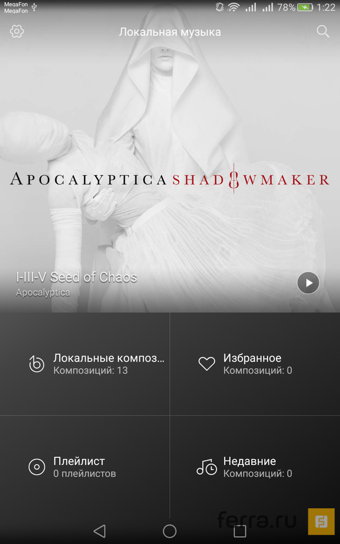 В аудиоплеере тоже нет никаких откровений: привычный как минимум с Android KitKat дизайн, поддержка воспроизведения музыки из папок (что будет полезно для любителей скачивать музыку невесть откуда) и практически полное отсутствие опций для требовательных пользователей.