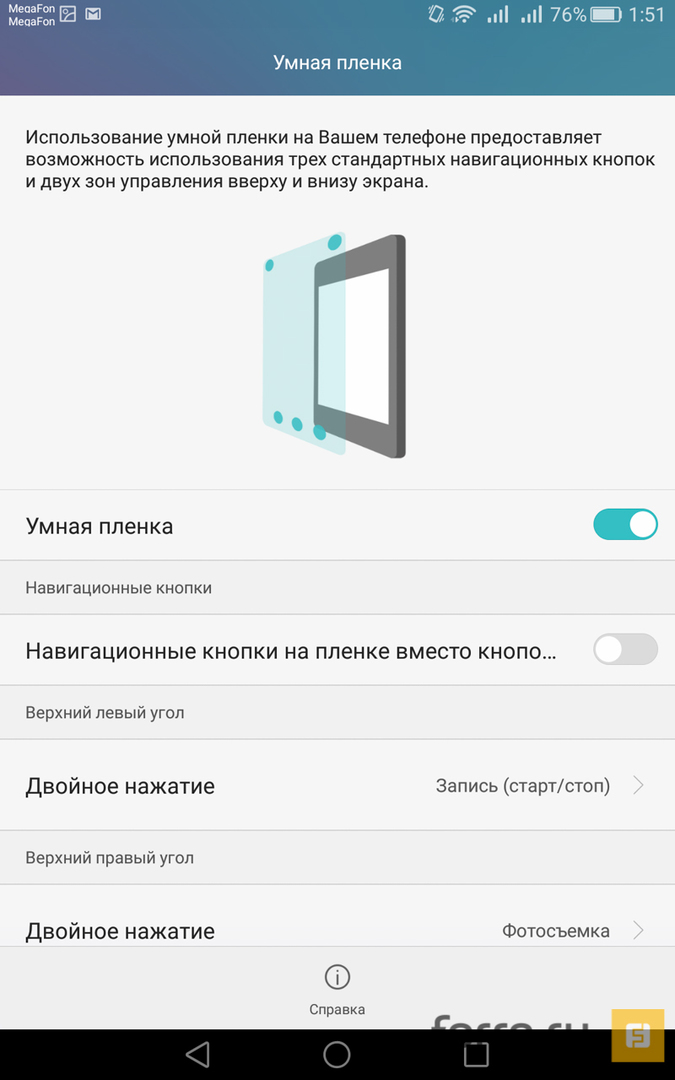 В наличии также и функция «умная плёнка», с помощью которой можно перенести часть системных задач и клавиш в определённые области покрытия дисплея. С заводской плёнкой такие фокусы не работают, поэтому о полезности этой «фишки» в деле остаётся только гадать.