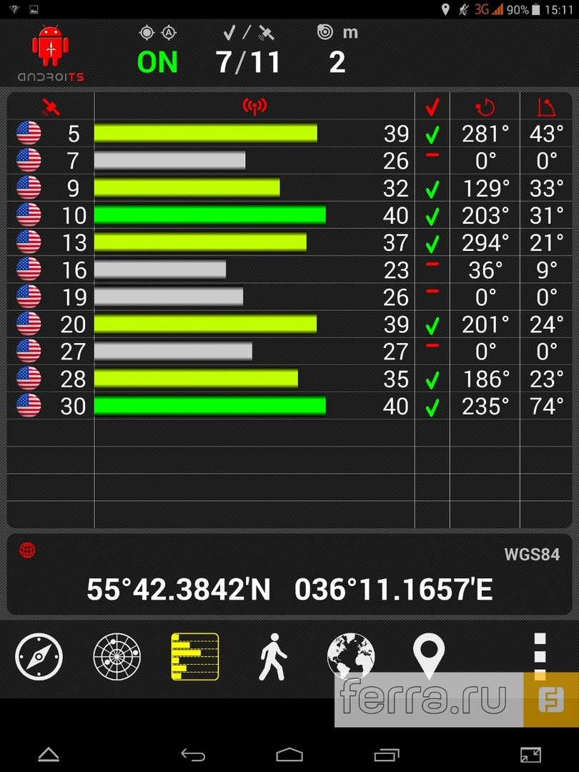 Результат PocketBook SURFpad 4 M в программе GPS Test
