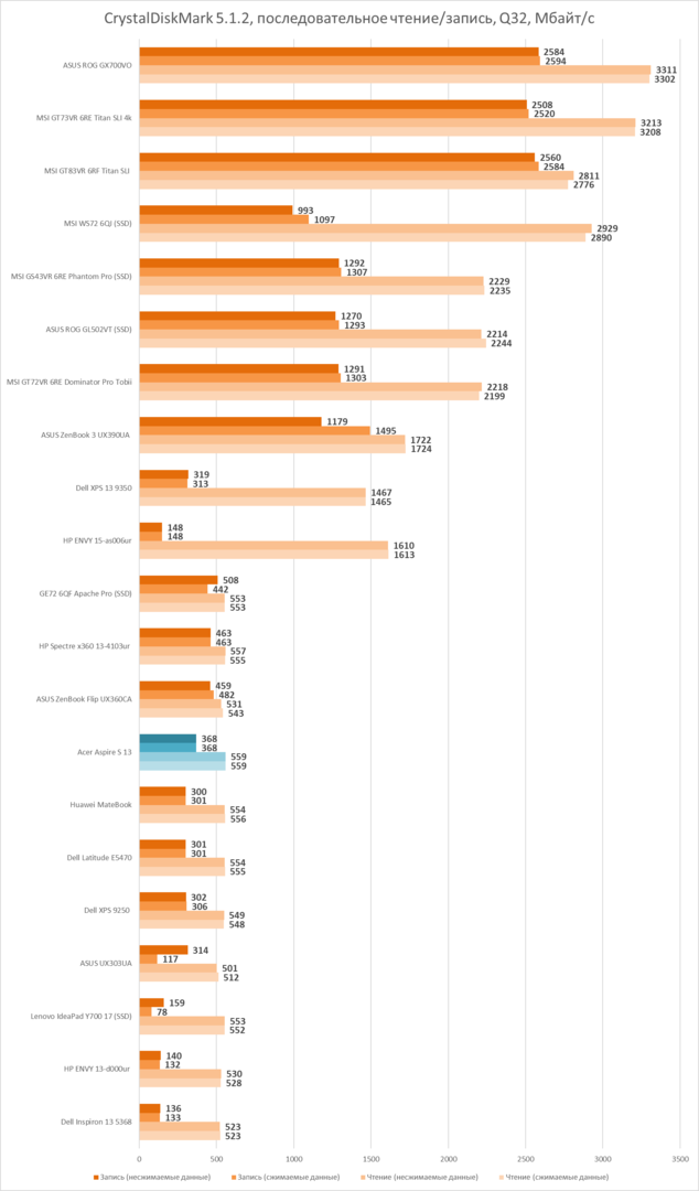 Твердотельный накопитель на 256 ГБ в достаточно недорогом ультрабуке — это прекрасная новость для тех, кто мечтал иметь по-настоящему компактный и отзывчивый ноутбук, но был напуган высокими ценами, которые ломят производители за SSD вменяемого объёма. И, на мой взгляд, ничего страшного, что он — далеко не самый быстрый накопитель всех времен. Если до этого у вас был опыт работы с ПК или ноутбуками только с HDD, то скорость работы Acer Aspire S 13 вас приятно удивит несмотря на то, что работает его SSD по в пределах возможностей интерфейса SATA 3.0.