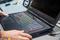 Но выделяет его из толпы не (только) это. У него весьма любопытная система охлаждения. Для того, чтобы активировать её на все деньги и получить возможность разогнать ноутбук, вам потребуется — кто бы мог подумать — подвинуть клавиатуру-слайдер на себя. Таким образом, вы открываете дополнительный доступ к воздуху двум большим вентиляторам.