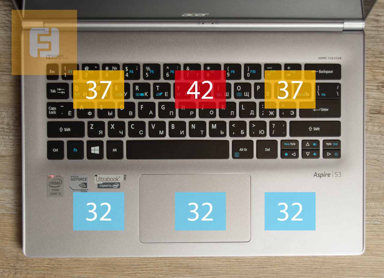 Клавиатура Acer Aspire S3-392G-54206G50tws — пять рядов вместо шести