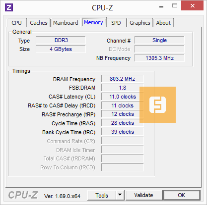 | Память | 1x 4 Гбайт, DDR3, 1600 МГц, Single Channel | ||