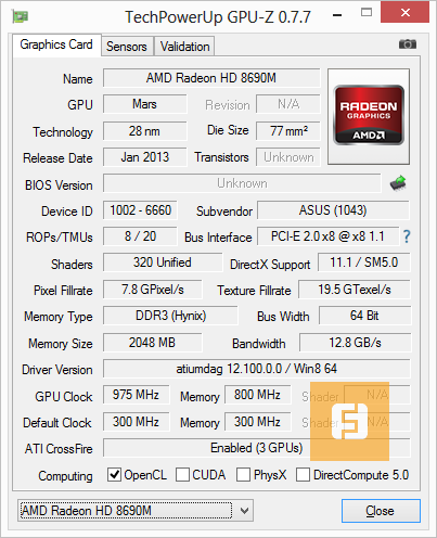В дополнение к интегрированному видеоядру в ASUS X550DP присутствует дискретная видеокарта AMD Radeon HD 8670M с 2 Гбайт DDR3. Это решение начального уровня, поэтому добиться 60 FPS в Battlefield 4 или другой «тяжелой» игре этого года на максимальных настройках вряд ли получится. Но эта видеокарта способна вытянуть игры предыдущего поколения.