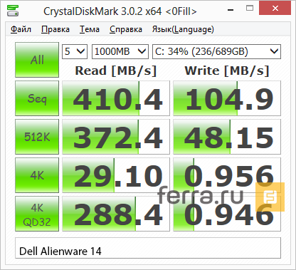 Результаты тестирования Dell Alienware 14 в играх, настройка графики medium