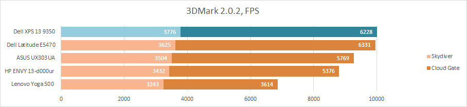 Видеоядро у i5-6200U и i7-6500 не отличается почти ничем, как практически не отличается и игровой потенциал лэптопа на основе только лишь этих систем-на-кристалле. Dell XPS 13 9350 хоть и выбился в лидеры, и даже опережает Dell Latitude E5470, с гораздо более мощным процессором, но разница составляет пару кадров в секунду, которые вы не ощутите на глаз.