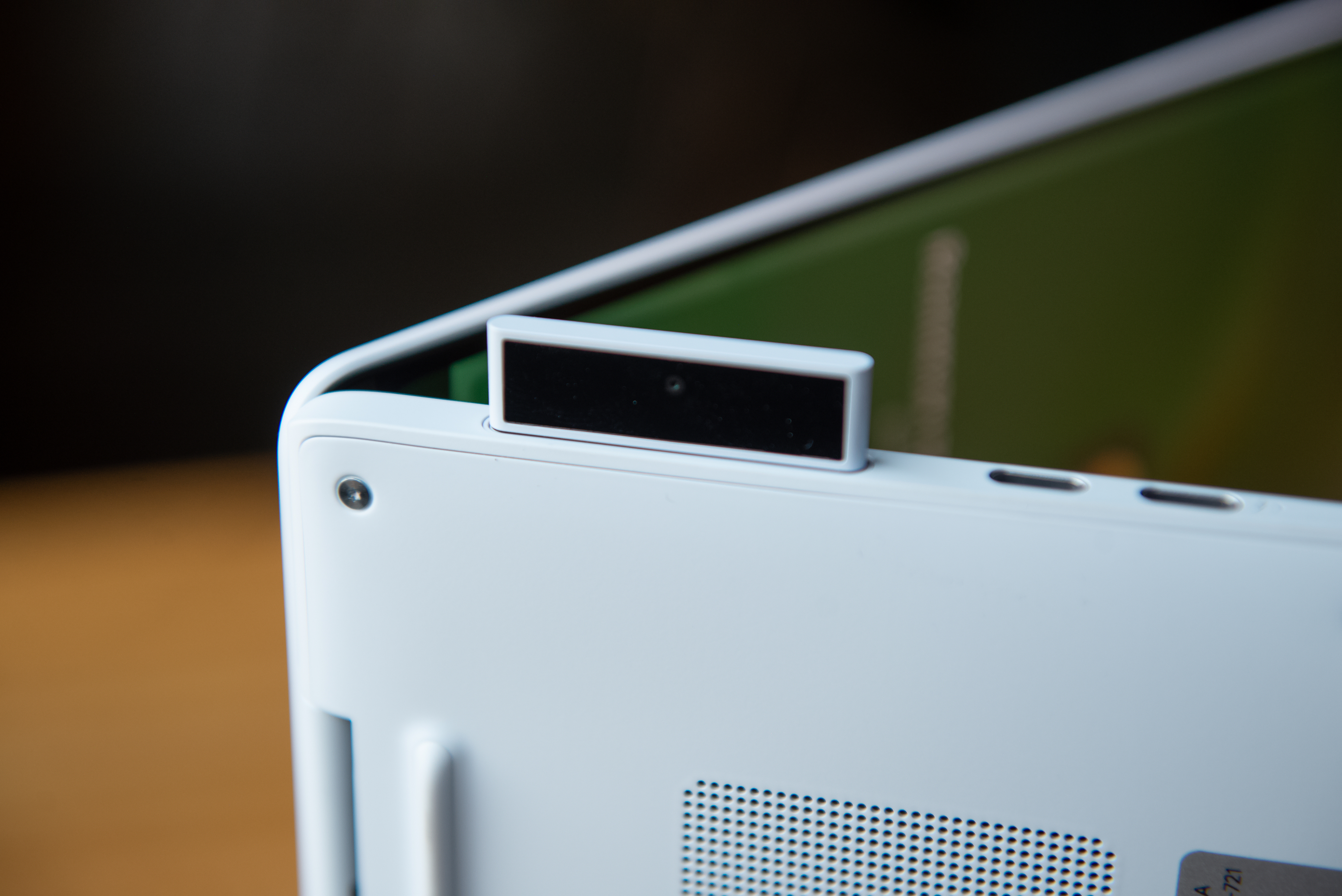 - 3.1K OLED-дисплей 120 Гц без утомляющего зрение мерцания. Даже здесь топили за рекорды компактности — в габариты 14.2” ноутбука вместили 14.6”. Как? За счёт того, что убрали веб-камеру с верхней рамки. Теперь её (веб-камеру, а не рамку) можно достать из «кармана» в корпусе и поставить на магнитную площадку на кромку крышки в те моменты, когда камера вам нужна. Можно даже задом наперёд поставить и снимать тех, кто сидит сзади ноутбука!