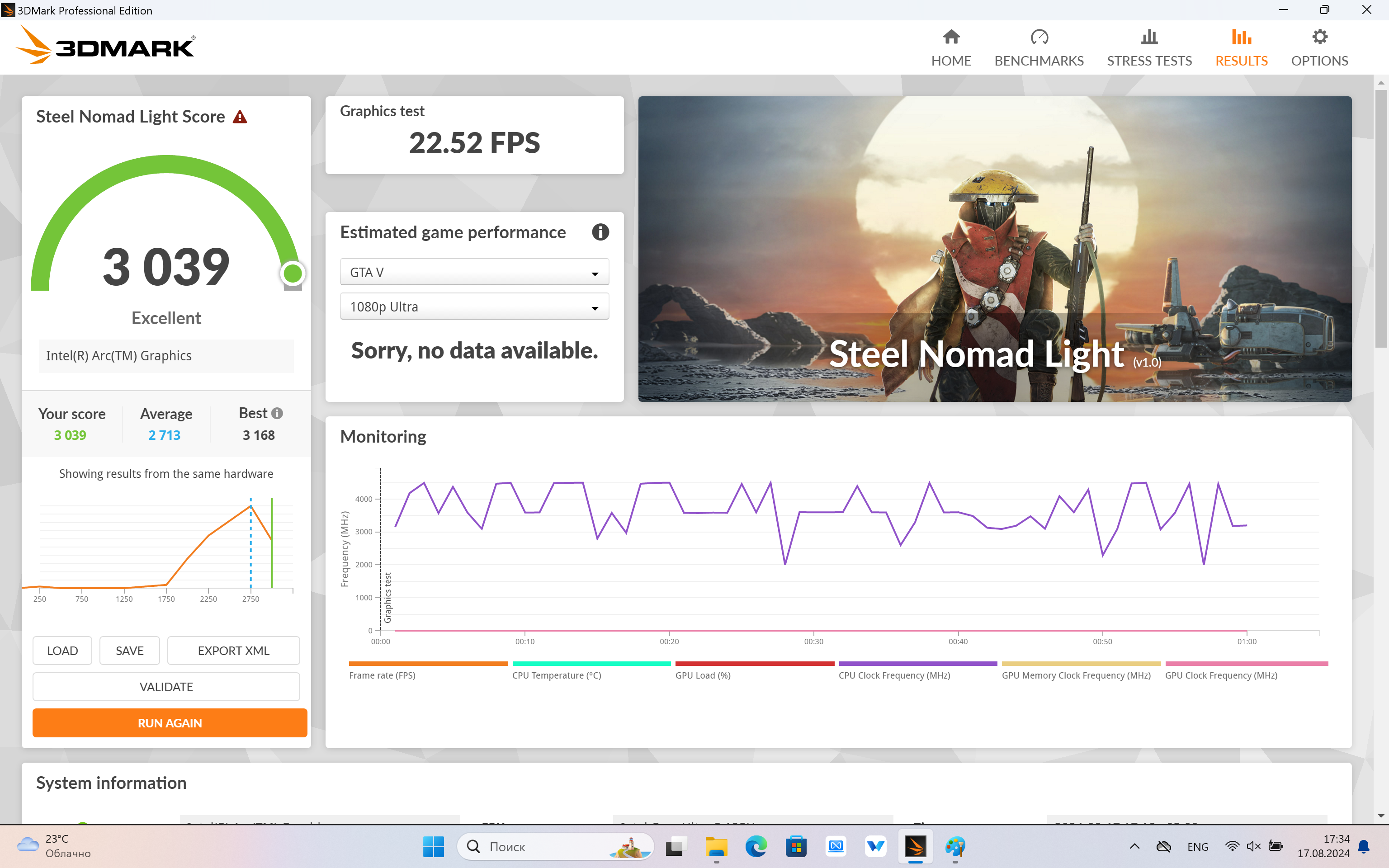 Казалось бы — ну и в чём тогда смысл от нового процессора? Прирост автономности отстутствует, производительность увеличилась лишь самую малостью. Но смысл всё же есть. Если взять тесты GPU, то Intel Arc в Intel Core Ultra 5 125H показывает уже значительный прирост по сравнению со всем, что у Intel было в предыдущих поколениях. Я смог поиграть в GTA V в разрешении Full-HD на максимальных настройках с частотой кадров не ниже 45 FPS. А чуть на более скромных настройках можно получить стабильные 60+ FPS! Считаю, это победа для Intel.