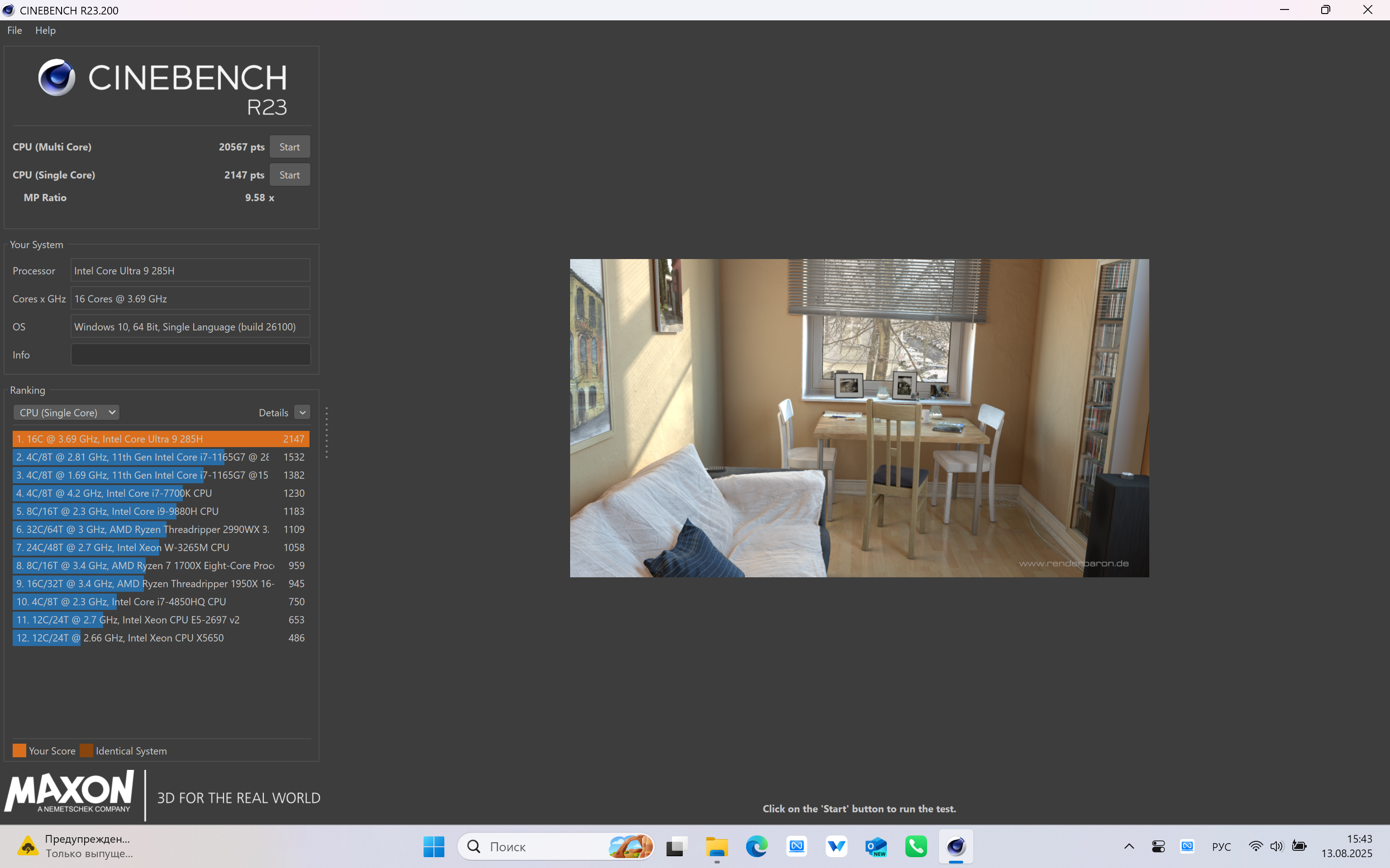 В бенчмарках ноутбук показал себя просто прекрасно. Особенно в Cinebench R23, где процессор Intel Core Ultra 9 285H значительно обошёл флагманские десктопные процессоры прошлых поколений. Если сравнивать с макбуками, то по данным NotebookCheck в этом тесте 12-ядерный Apple M4 Pro отстаёт на 2%, а 14-ядерный M4 Pro производительнее на 19%. Ну и Ryzen 7 7700 среди процессоров настольных компьютеров медленнее, кстати.