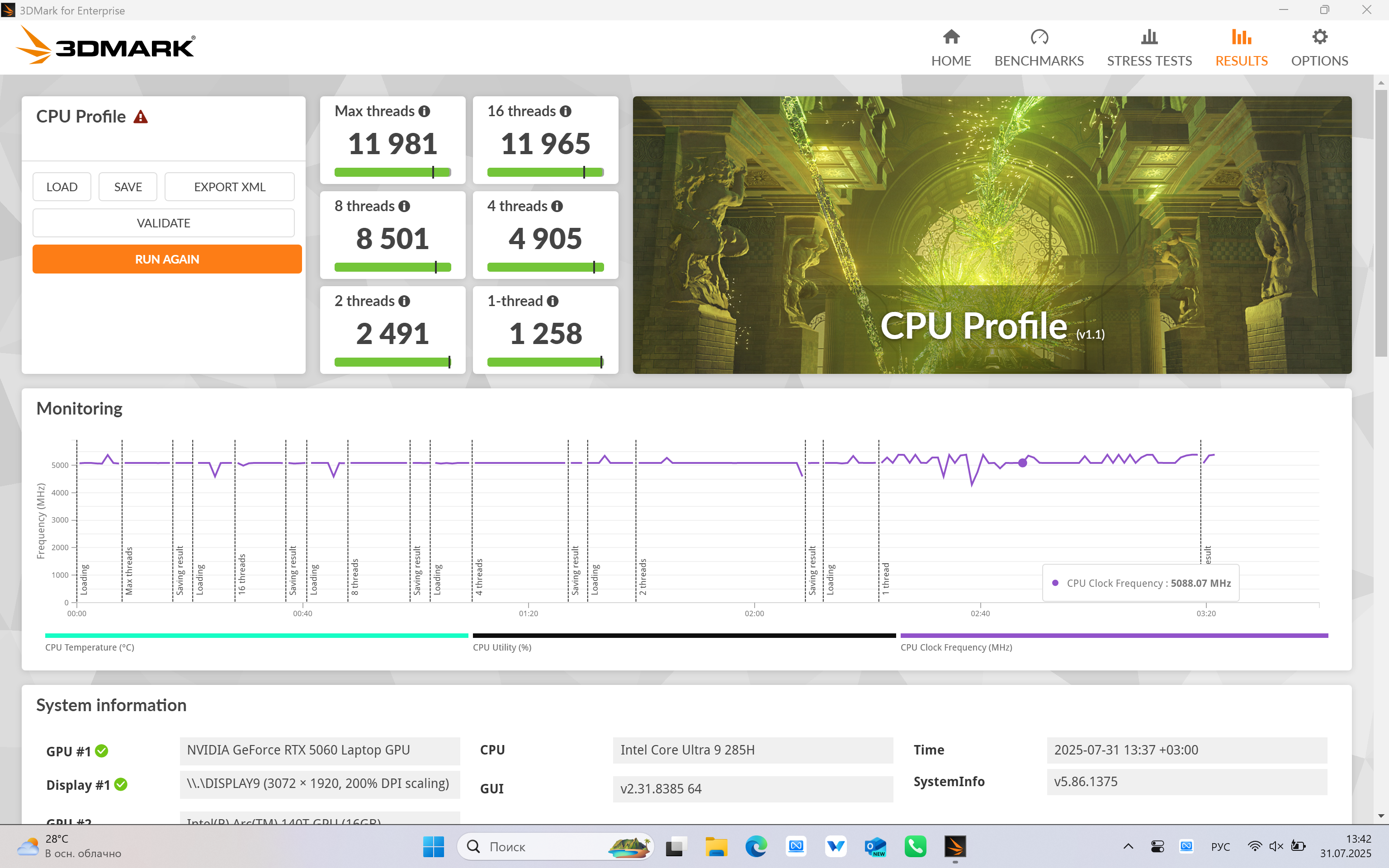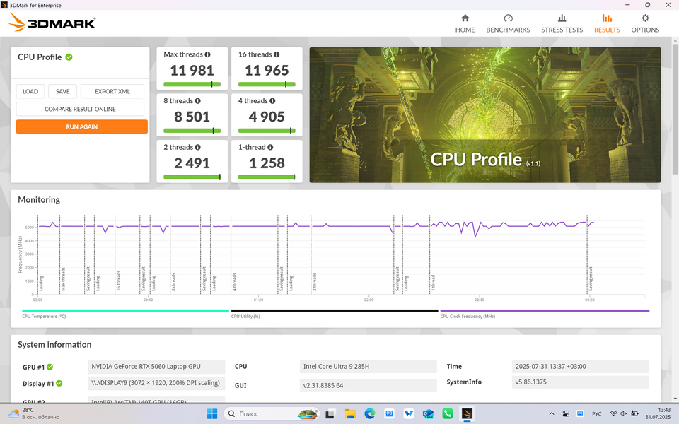 Вот вам видео для ориентира с тестом игр на ноутбуке с RTX 5060. Там, правда, Core i7, но от Core Ultra 9 в играх отличия с 5060 будут минимальны: