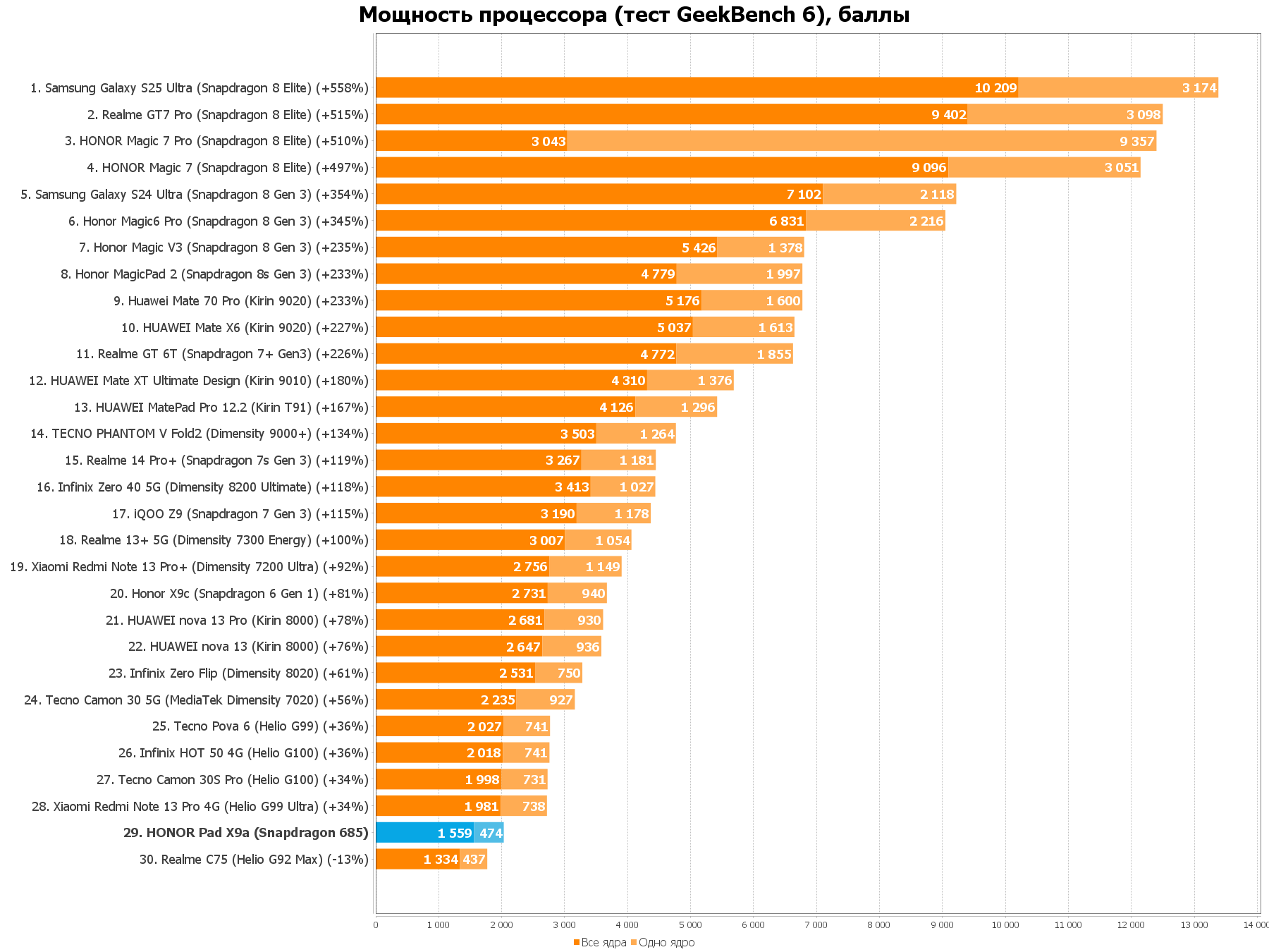 Не игровой, но в остальном супер-приятныйНовый HONOR Pad X9a стоит почти столько же, сколько и его предшественник — 27 тысяч рублей в сетевой рознице (на маркетплейсах, наверное, и дешевле будет), при этом он действительно интереснее, чем базовый Pad X9, и без компромиссов, как часто бывает у Realme/Tecno (когда новая модель хоть в чём-то да уступает предшественнику).