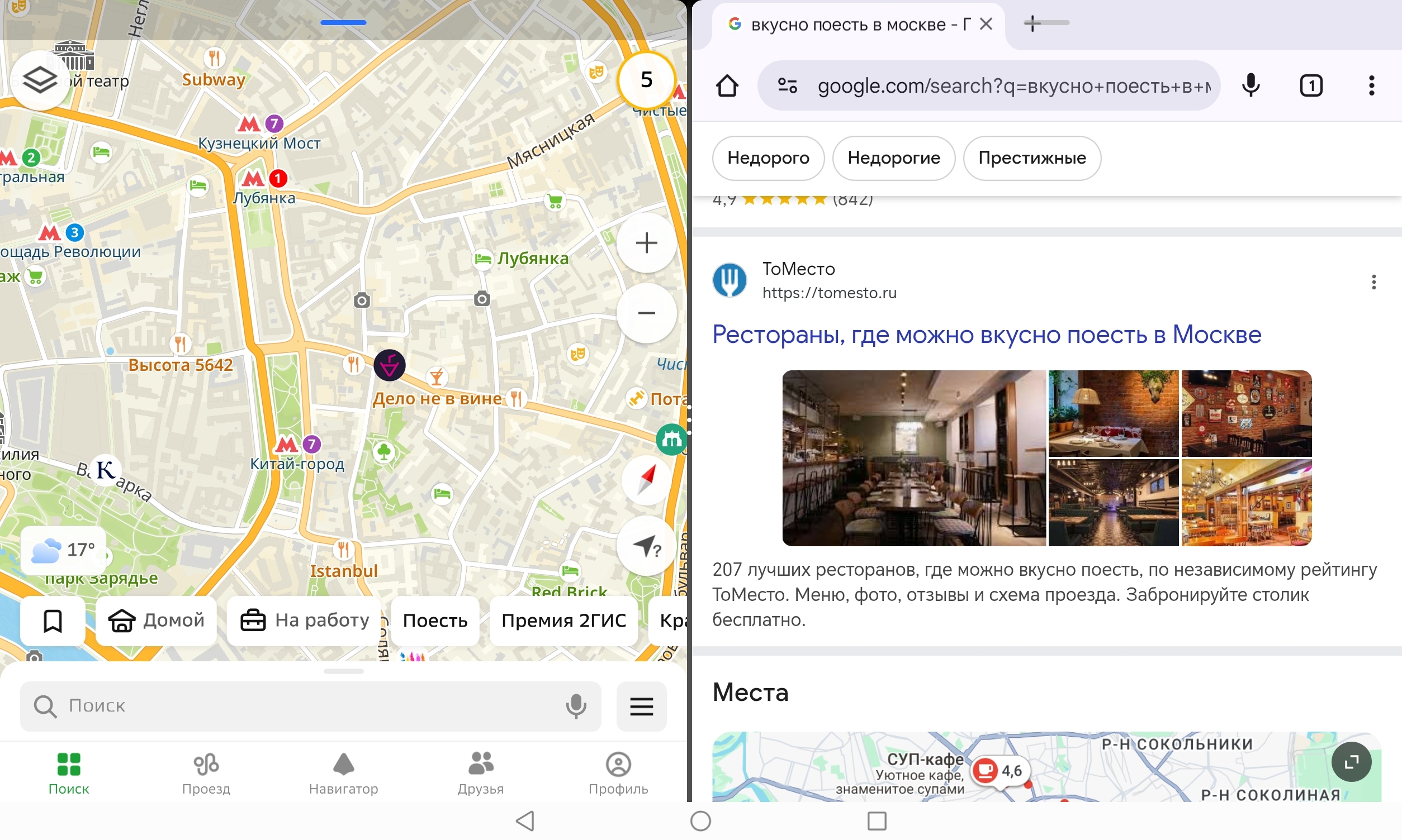 Наконец, на планшете можно без проблем пользоваться многооконным режимом — когда на экране одновременно открыто несколько приложений. Конечно, это сейчас и на любом нормальном смартфоне (не айфоне) работает, но на большом экране это как-то сильно приятнее и удобнее. Интересно, что даже несмотря на слабый процессор приложения при таком использовании не тормозят и продолжают плавно работать с анимацией в 120 FPS.