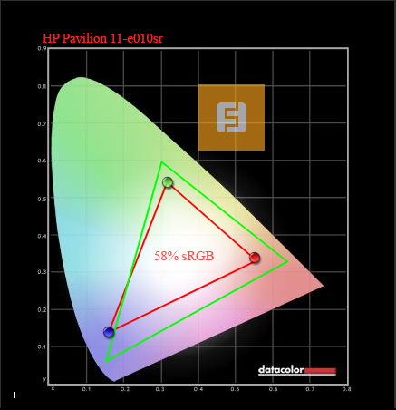 Максимальная яркость дисплея перешагивает 180 кд/м2 и является стандартом для устройств подобного класса, как и низкая контрастность — всего 90:1 . Цветовая палитра sRGB покрыта довольно слабо, но никто и не ждёт от бюджетного устройства достоверности в цвете на уровне ультрабуков с IPS-дисплеем. Углы обзора привычно невелики — эта болезнь давно стала визитной карточкой дешёвых TN-матриц. Да и глянцевое покрытие требует осмотрительности при выборе места работы — вопреки заявлениям HP об антибликовом покрытии, дисплей так и остался зеркалоподобным.