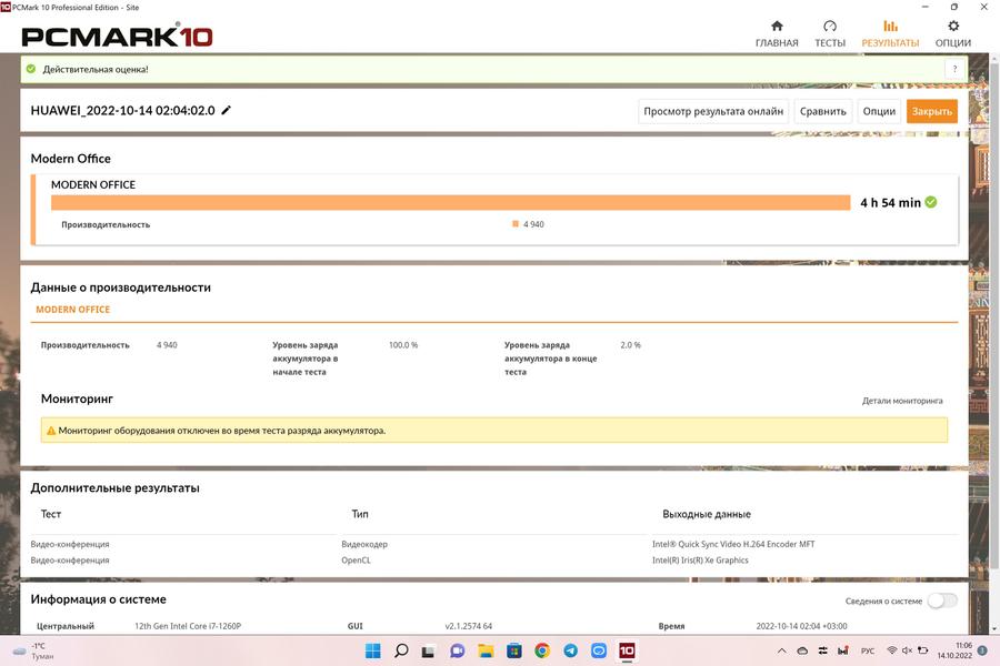 | Конфигурация | Huawei MateBook X Pro 2022 |