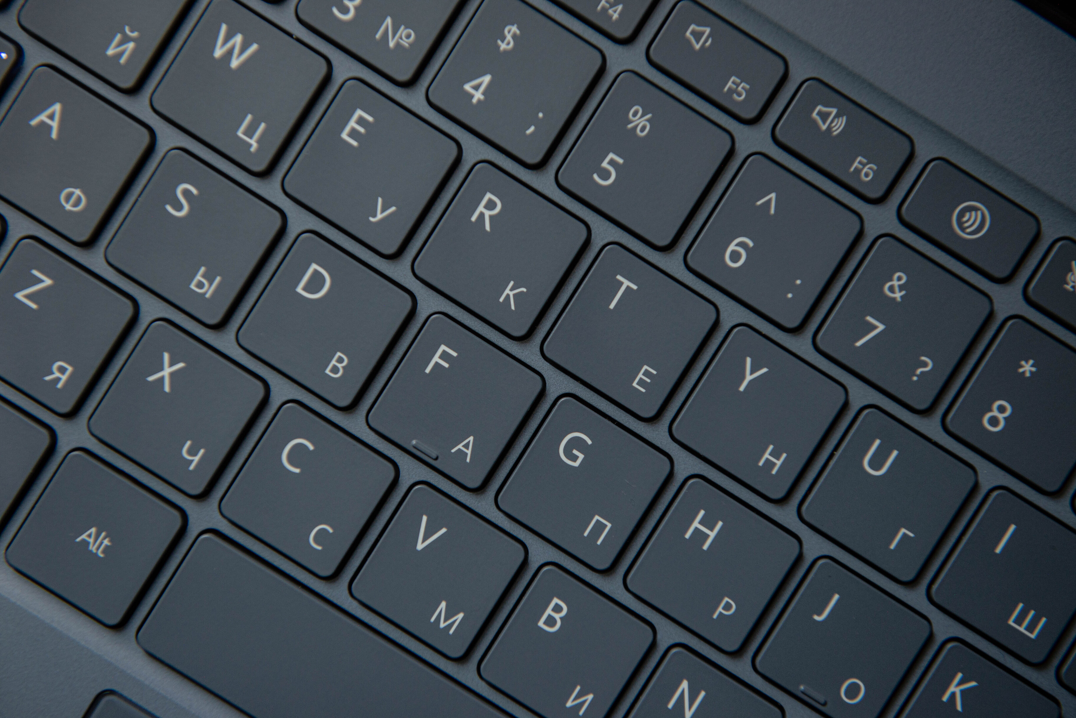 Клавиатура меня тоже скорее порадовала. Размер клавиш и их расположение стандартное, а значит не придётся переучиваться печатать вслепую. Во время использования клавиатура приятно постукивает, а ход клавиш позволяет получать тактильное удовольствие от набора текста. Из приятного — возможность «зафиксировать» клавишу Fn аналогично Caps Lock'у. Теперь не нужно лезть в настройки BIOS, чтобы отключить или включить её по умолчанию. Почему это до сих пор не стало нормой у остальных производителей?