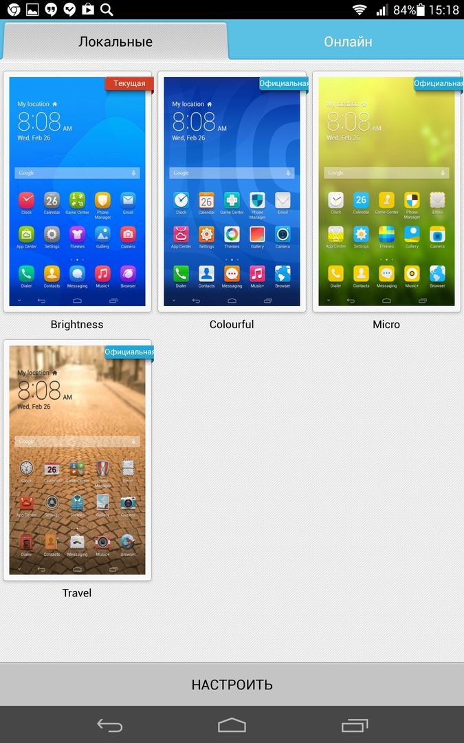 Внешний вид домашнего экрана MediaPad X1 слегка отличается от стандартного Android, причём отличается в лучшую сторону. Но это ещё не всё: с помощью приложения «Темы» оформление можно менять.