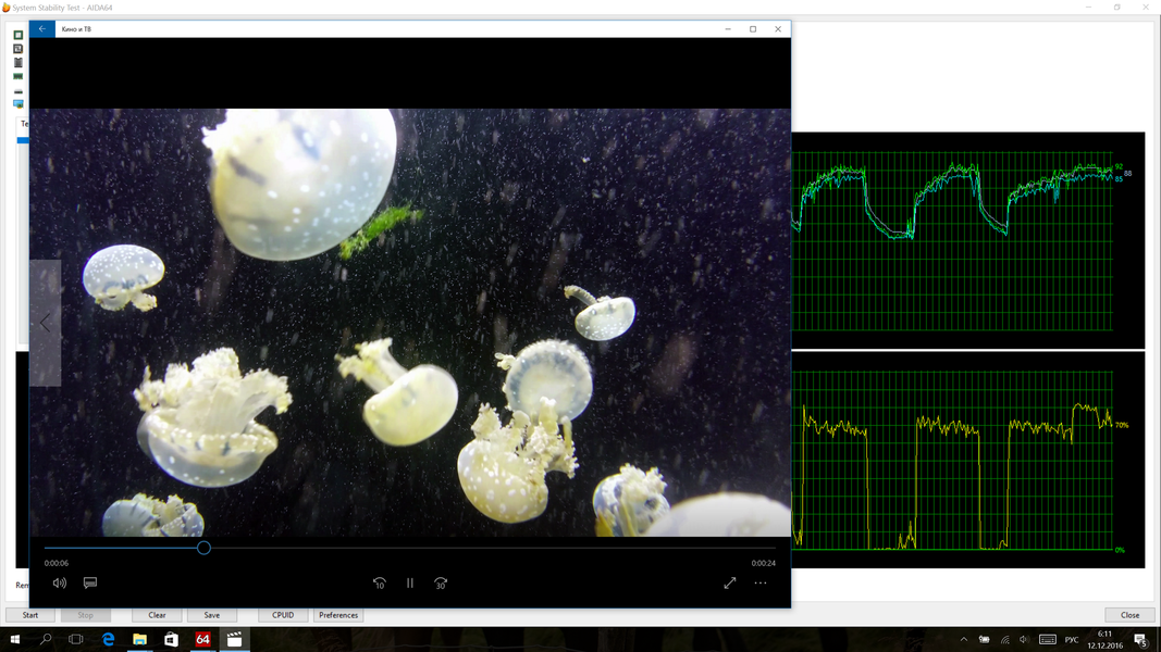 Теперь о фильмах. При проигрывании 4К-видеоролика сжатого кодеком HEVC (Main 10) с битрейтом 120 Мбит/с, i7-7500U загружался только на 15-20%. Правда, только в предустановленном в Windows проигрывателе под названием «Кино и ТВ». В нём же, но на лаптопе с i7-6500U видеоряд подёргивался с частотой 2-5 FPS, а загрузка процессора составляла около 70%.