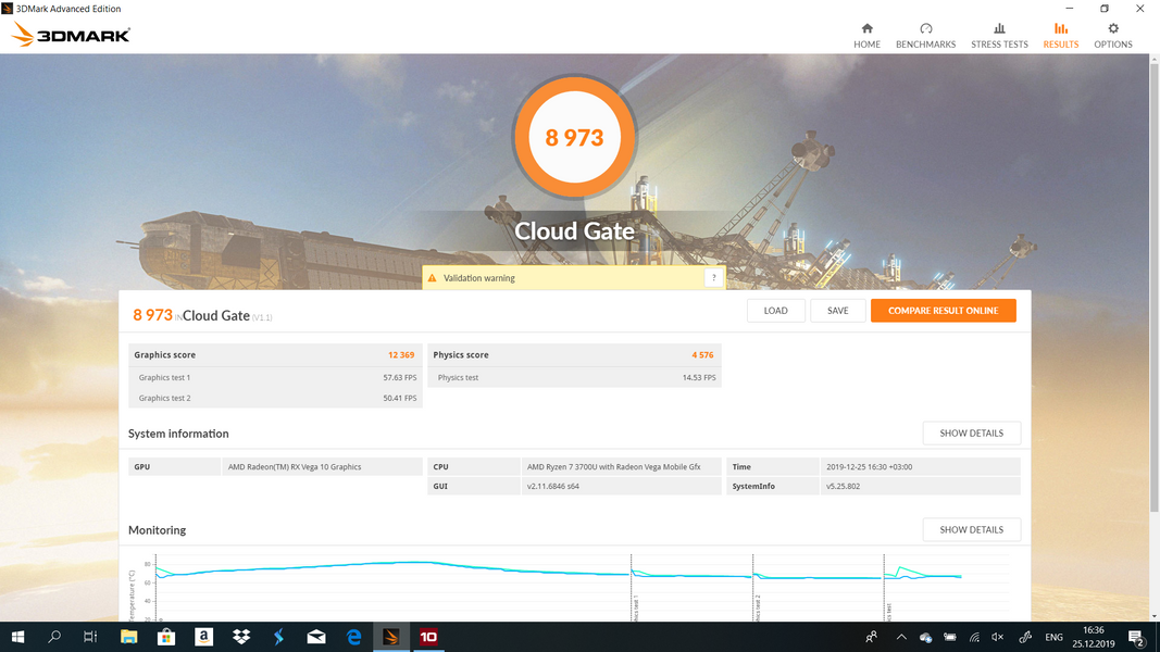 Версия ноутбука, что была у меня на тестировании, работает на процессоре AMD Ryzen 7 3700U с интегрированной графикой Radeon Vega Mobile Gfx. Оперативной памяти здесь — 16 Гбайт. В целом конфигурация неплохая, и в бенчмарках железо показало себя достойно, но для работы этот ноутбук подходит неважно. При длительной нагрузке на процессор (например, если вы кодируете музыку/видео или экспортируете файлы jpg из RAW с фотокамеры) вентиляторы не справляются с нагревом процессора, Ryzen разогревается до 90 градусов по Цельсию, а потом, за счёт "инстинкта самосохранения" роняет частоту с 2.3 ГГц до 1.4-1.5 ГГц (зависит от того, есть ли нагрузка ещё и на графику). Понятное дело, что это не просто ноутбук, но и планшет, и вентиляторы делали с учётом того, чтобы аппарат оказался не слишком шумным, но зачем вам гоночная машина, у которой на скорости свыше 100 км/ч отваливается колесо? Заявленных "до 4 ГГц" для этого процессора вы никогда не увидите, поэтому проще не переплачивать и, если уж нравится дизайн этого ноутбука (а дизайн прекрасен), покупайте версию с Ryzen 3 3300U.