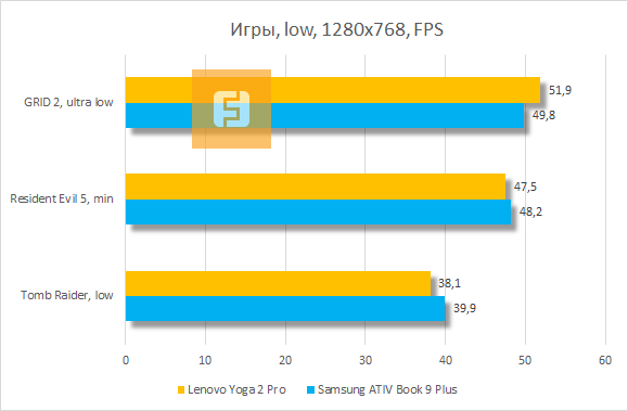 Владельцы Yoga 2 Pro не станут жаловаться на мелкие меню в играх — ультрабук просто надорвётся в современных тайтлах при разрешении 3200x1800 пикселей. Граница игрового комфорта пролегает в районе разрешения 1280х768 и минимальной детализации графики. В общем, игровым потенциалом героя нашего обзора будут довольны только ценители ретро и пасьянса «Косынка».