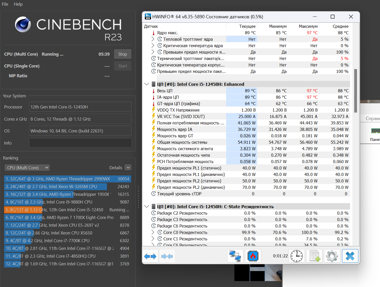 - Система охлаждения справляется с i5-12450H «на тоненького»