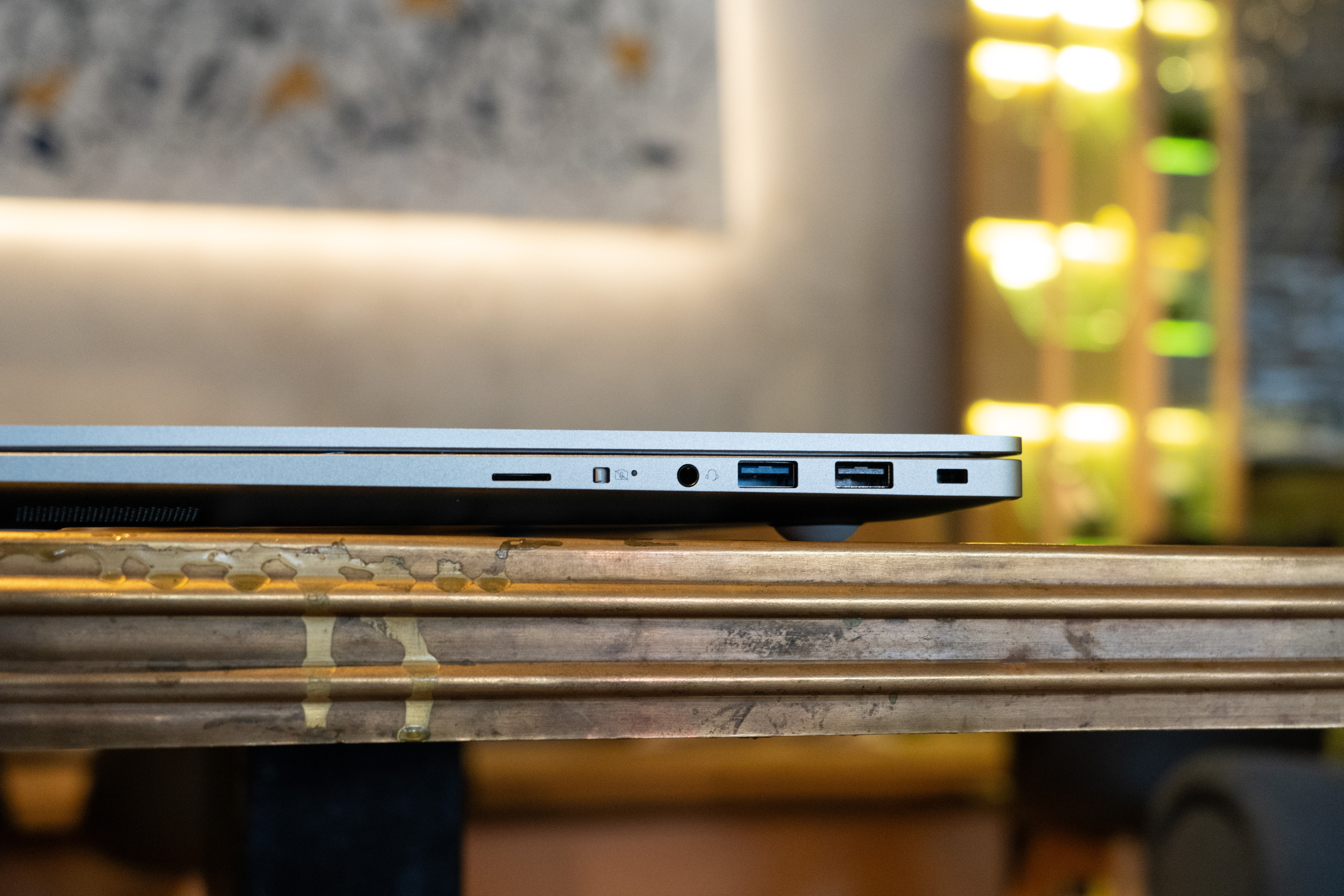 Портов много, на них экономить не стали. На левой грани ноутбука выведены основные порты для стационарного подключения: USB-C (Power Delivery) с индикатором питания полноразмерный HDMI, один скоростной USB-A и второй универсальный USB-C; правая сторона загружена периферийными интерфейсами, включая картридер MicroSD, физический переключатель блокировки камеры, аудиоразъем 3.5 мм, еще два порта USB-A и слот замка Kensington. В сумме конфигурация из трех USB-A и двух USB-C обеспечивает полную независимость от переходников (ну, разве что для вывода изображения на дополнительные мониторы придется обзавестись HDMI-донглом).