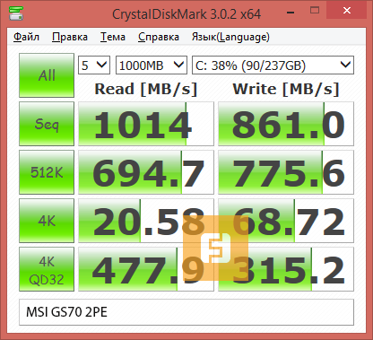 Жёсткий диск GS70 Stealth Pro продемонстрировал адекватную для заявленным характеристикам производительность.