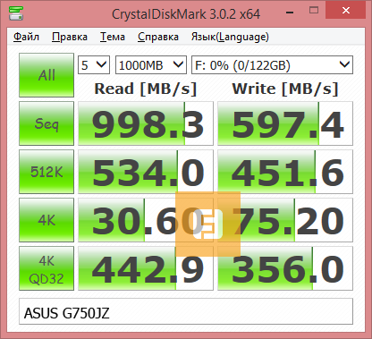 Подсистемы хранения данных у MSI GT60 2PE и ASUS G750JZ почти идентичны, и там и там используются два SSD в RAID0 и один HDD. В целом пары SSD ведут себя похоже, в некоторых тестах вперед вырывается MSI GT60 2PE, в некоторых — ASUS G750JZ.