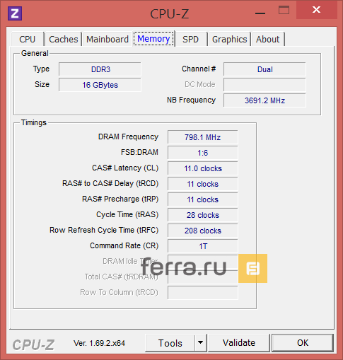 Объем оперативной памяти в системе по сегодняшним меркам наиболее оптимальный — 16 Гбайт (с возможностью увеличения до 32Гб). Его будет достаточно еще длительное время и для игр, и для прочих задач. Тип используемой памяти DDR3-1600, тайминги можно увидеть на скриншотах ниже.