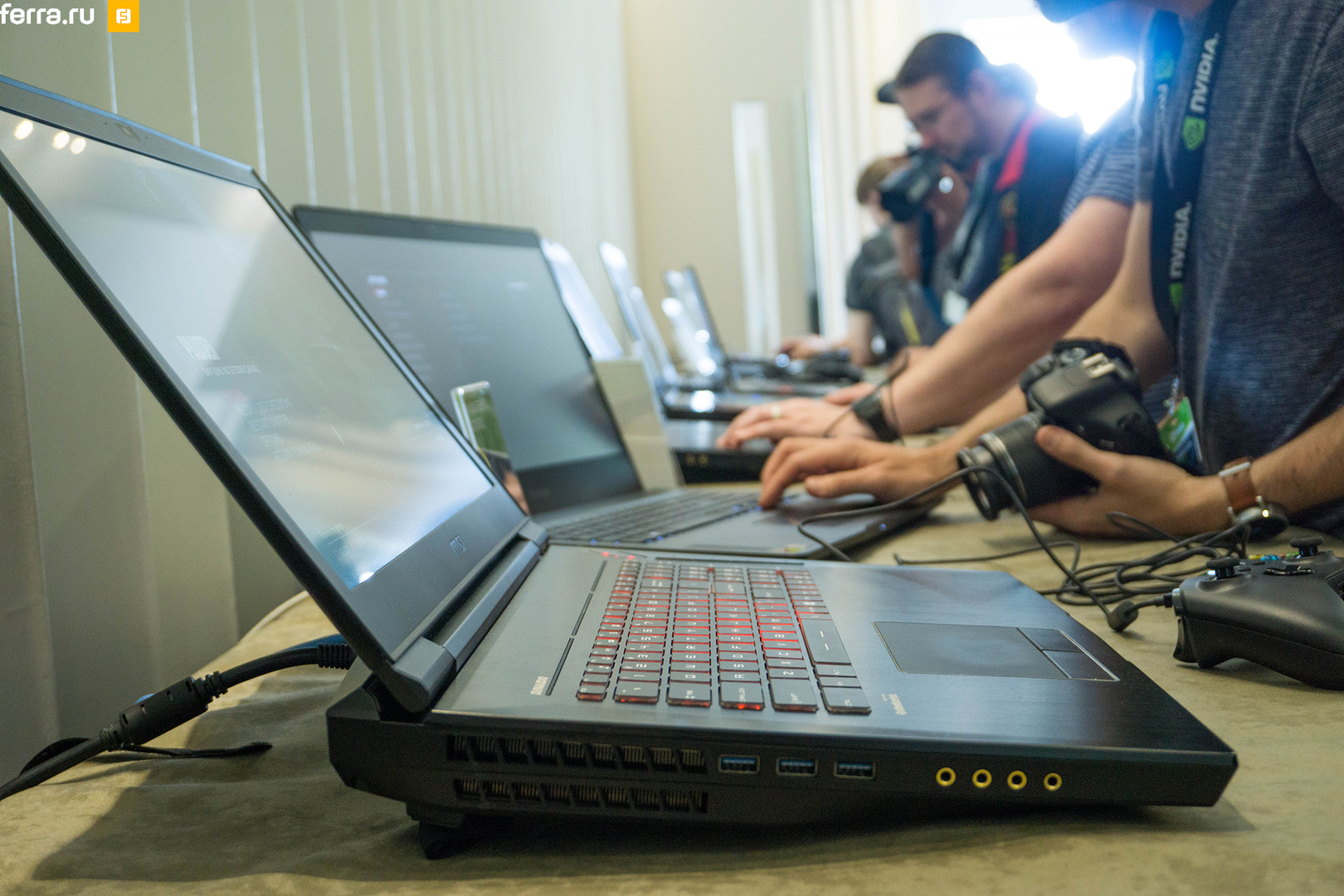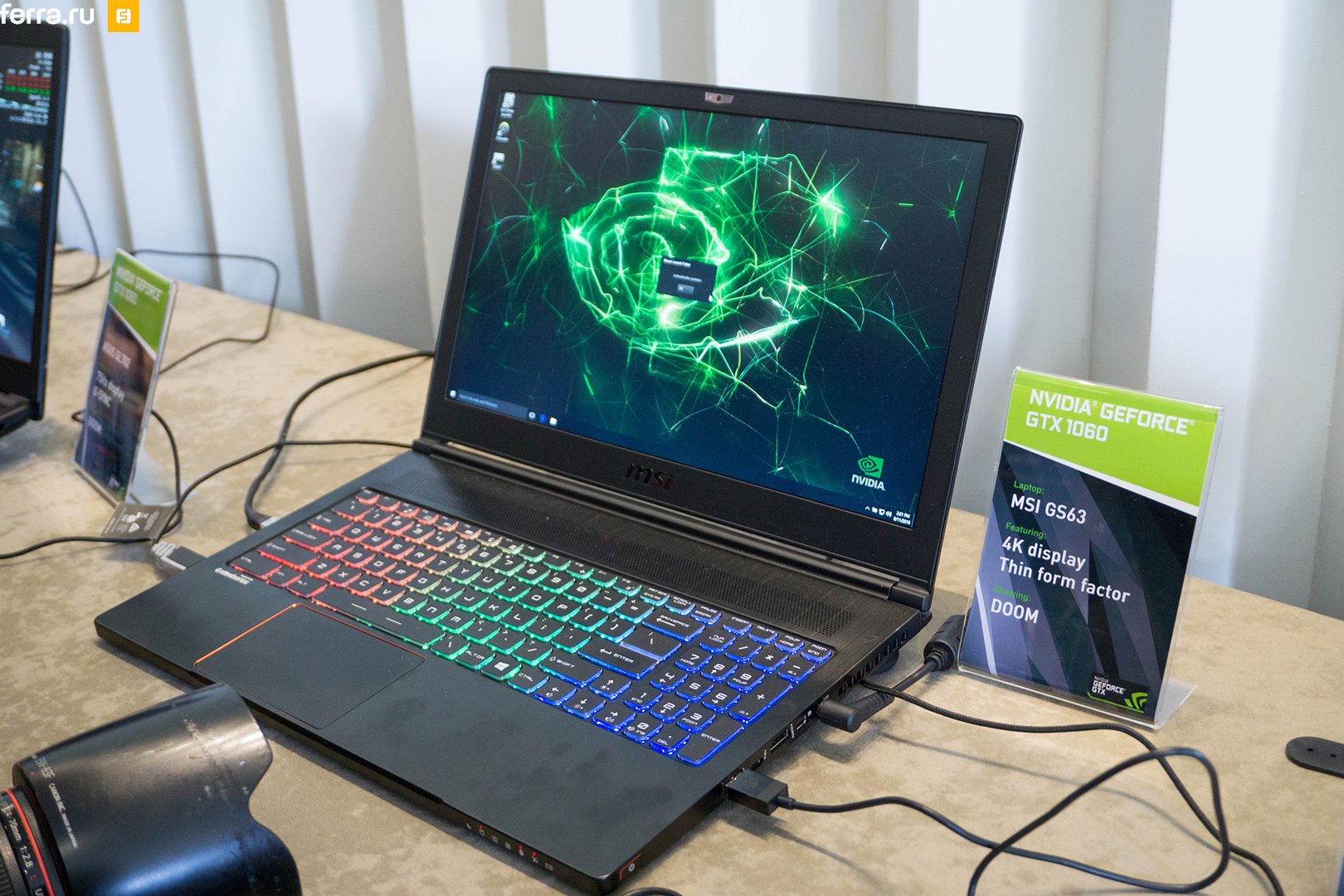 Конкретный TDP новых видеокарт тоже пока неизвестен, однако производитель обещал, что он остался примерно на уровне предыдущей линейки. Надо заметить, что на презентации было множество игровых лэптопов, которым еще только предстоит появится на полках магазинов. Все они были включены и всеми силами крутили бенчмарки и игры, и ни один не завывал вентиляторами системы охлаждения. Правда, тонкие модели — всё такая же редкость, как и раньше. Однако, они всё еще есть, по крайней мере удалось заметить компактные решения MSI и Razer.