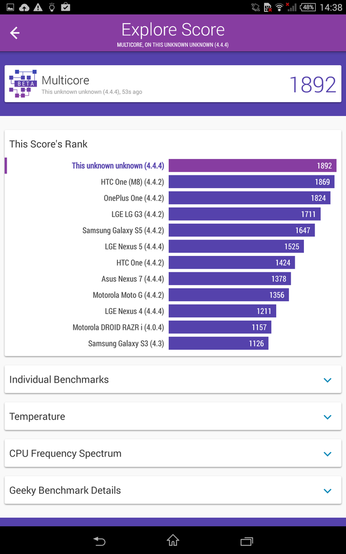 Аналогичная февральскому флагманскому смартфону Xperia Z2 аппаратная платформа уже зарекомендовала себя как чрезвычайно быстродействующая. Даже сейчас Sony Xperia Z3 Tablet Compact входит в тройку лидеров практически во всех синтетических тестах. На деле это означает плавную работу даже без намека на задержки. Графический ускоритель Adreno 330 даже на столь высоком разрешении позволяет играть в любые мобильные игры, а также воспроизводить транслируемый с PlayStation 4 визуальный ряд, но об этом немного позже. Мы провели серию тестов, результаты которых оказались ожидаемо высокими.