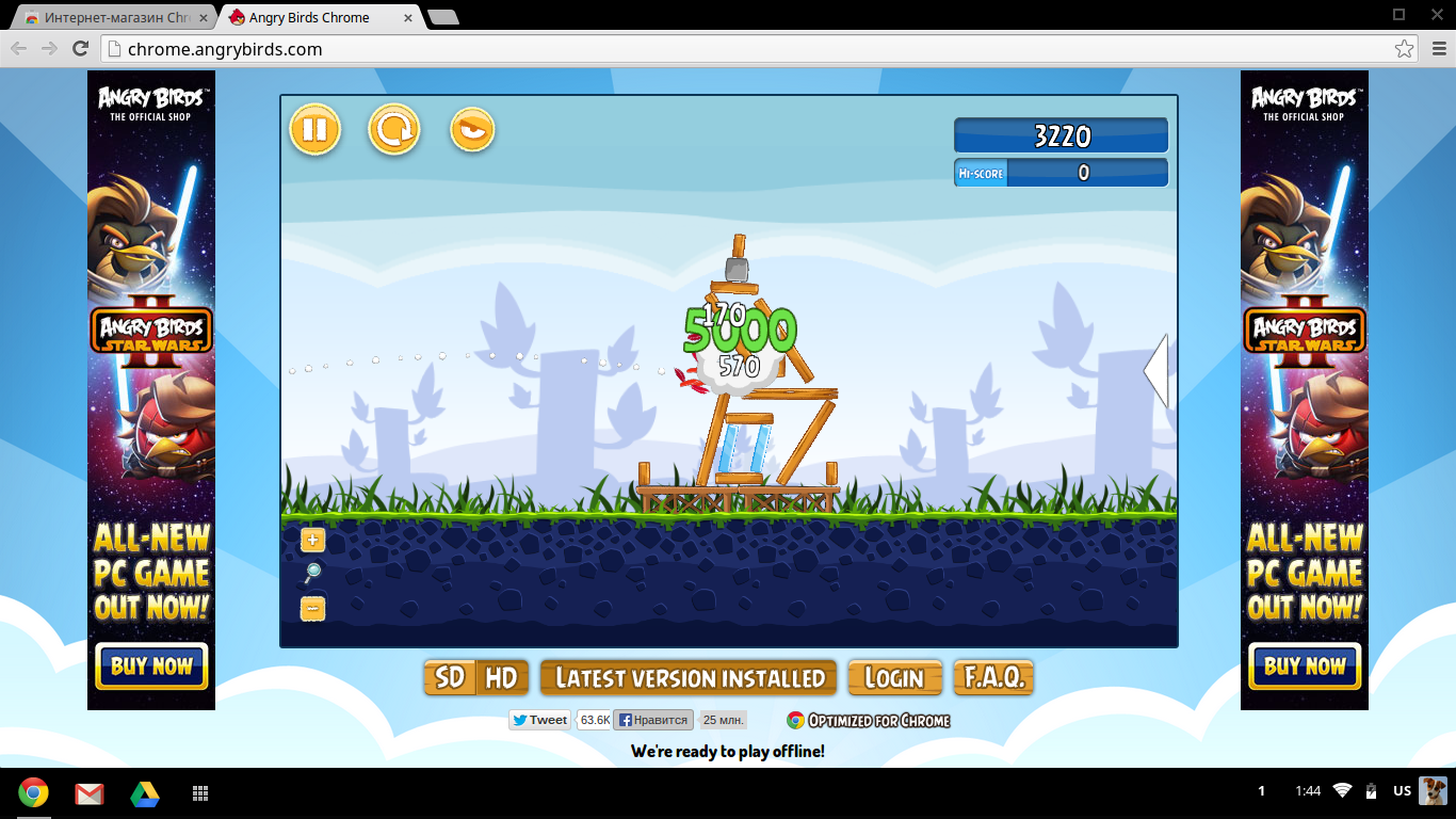 Совместимость в магазине приложений проверяется как попало, поэтому вам могут быть предложены кроссплатформенные продукты, нацеленные на Google Chrome под Windows — например, Need for Speed: World. Для любителей казуальных игр всё уже не так плохо — вы сможете поиграть в Angry Birds и подобные игры без доступа к сети. Flash Player тоже поддерживается «из коробки» и это даёт неплохую возможность для «манёвра» в плане онлайн-развлечений. Теоретически, эта модель хромбука в состоянии запускать все Tegra3-тайтлы, так что дело за адаптацией игр сторонними разработчиками.