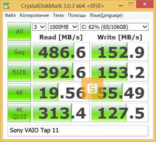 Единственное, в чём планшет Sony VAIO Tap 11 практически ничуть не уступает ультрабуку — это производительность системы хранения данных.