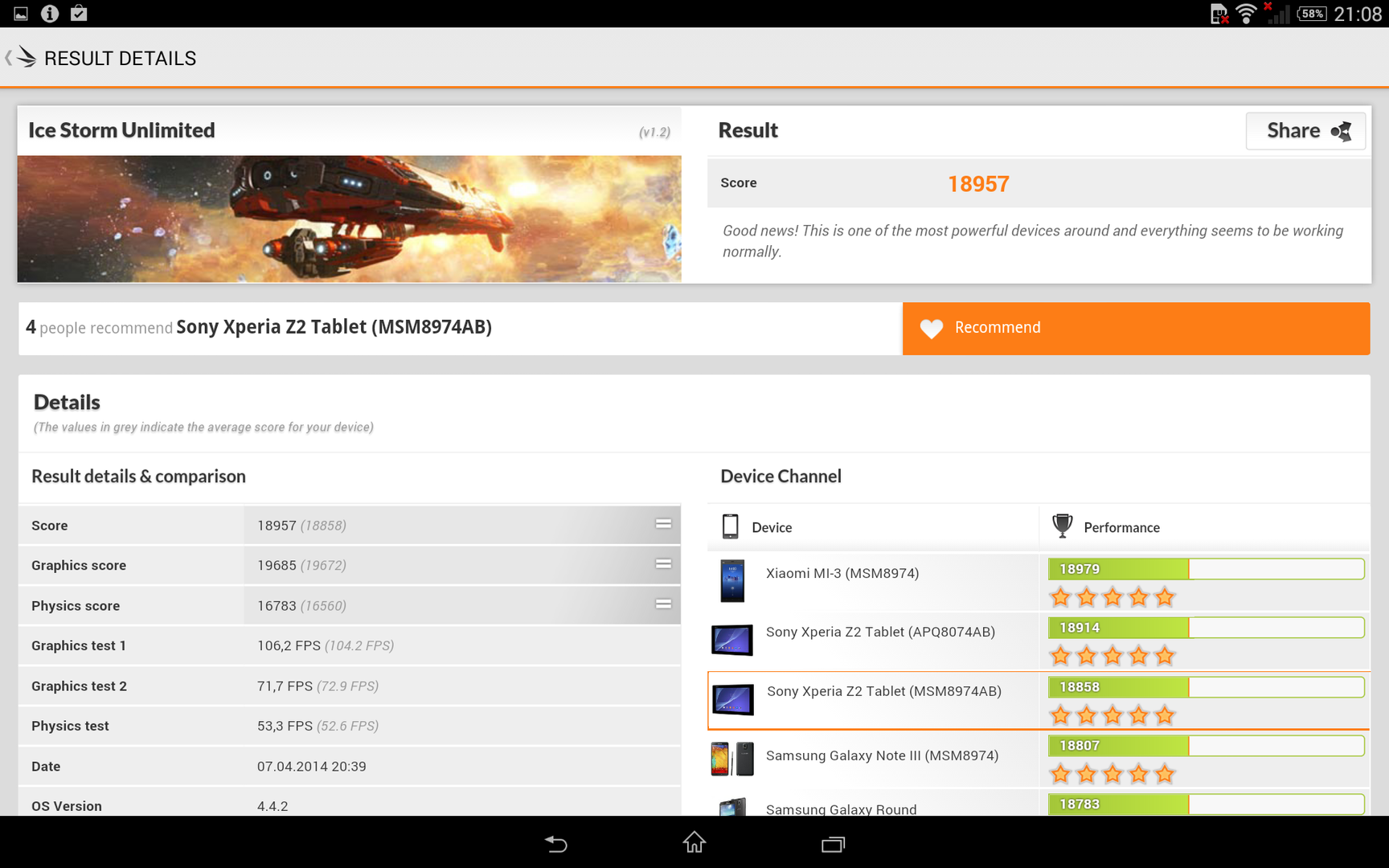 Графика Adreno 330 позволяет играть в любые игры, даже самые требовательные. К примеру, Dead Effect не вызвал ни одной задержки, примерно так же работают и другие требовательные блокбастеры. Но, чтобы убедиться в превосходстве Xperia Z2 Tablet, мы прогнали все стандартные бенчмарки и получили высокие результаты.