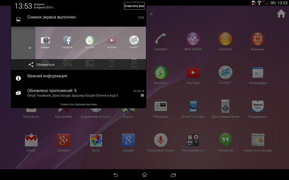 Виброотклик в планшете низкий и мощный. Такое ощущение возникает, когда вибрация срабатывает в тяжеленном устройстве, но ведь Z2 Tablet легкий и тонкий. В общем, тактильные ощущения приятные.