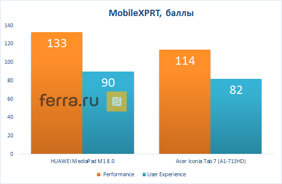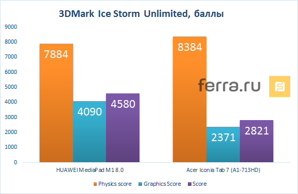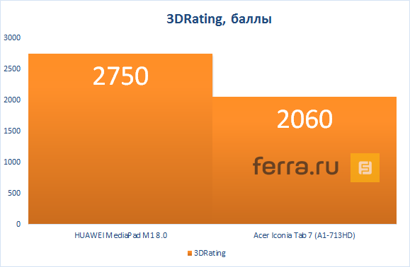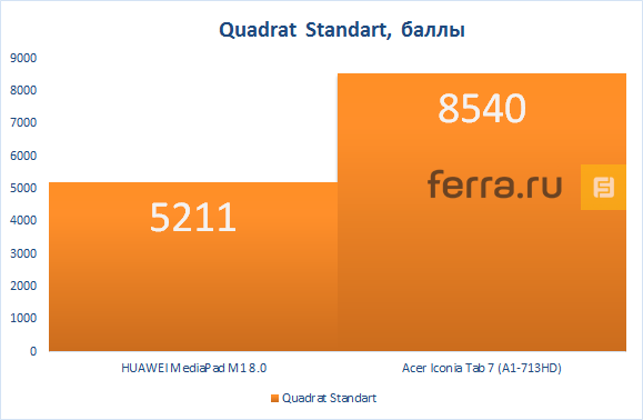 В итоге разница в производительности достаточно заметная, HUAWEI MediaPad M1 8.0 лидирует с большим отрывом почти во всех тестах.