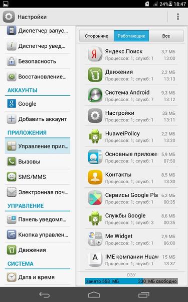 Присутствует и стандартная программа по оптимизации оперативной и постоянной памяти. И, скорее всего, она станет для владельца HUAWEI MediaPad M1 8.0 одной из самых часто используемых. Также маленькая, но полезная «фича» — настройка, каким программам можно выводить уведомления на панель, а каким приказать «молчать». Называется Диспетчер уведомлений.