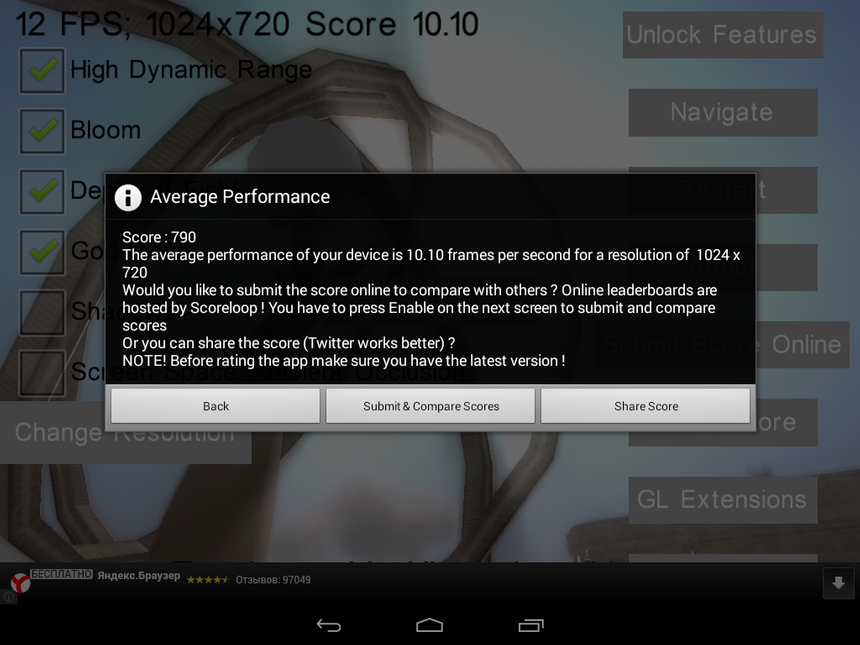 В бенчмарках Texet TM-9767 продемонстрировал результаты, соответствующие заявленной мощности. Это означает, что процессор не страдает от перегрева или иных инженерных просчётов. Изредка в Google Play можно встретить несовместимые с нашим планшетом приложения, но не стоит забывать о пока ещё редкой версии Android на данном устройстве.