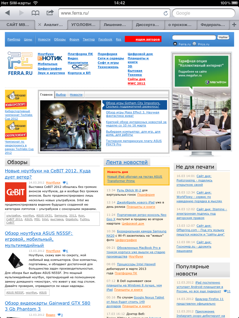 Один из игровых обзоров Ferra.ru на iPad 2 (слева) и новом iPad (справа)