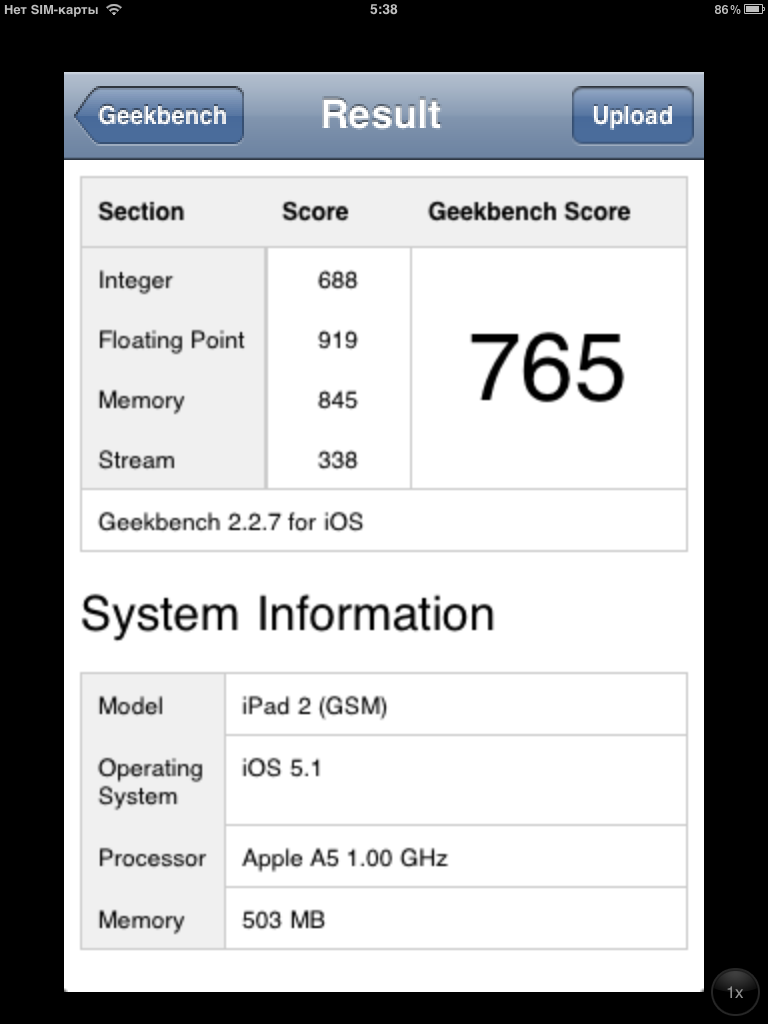 Процессор же жонглирует числами с прежней скоростью. Общий системный Geekbench показал приблизительно одинаковые результаты для двух планшетов.