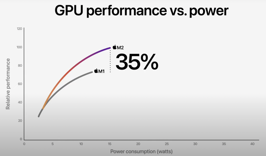 Правда, тут есть нюанс: Apple на презентации показала на графике, насколько M2 превосходит M1, вот только… Судя по всему, речь шла об “обычном” М1, а М1 Pro и M1 Max это не касается. Но как M2 держится по отношению к ним? А кто ж его знает!