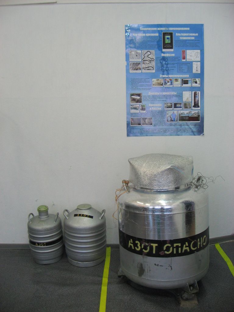 Замороженное тело помещают в специальный контейнер — криостат (или дьюар) — и хранят в жидком азоте до востребования (которое, будем надеяться, когда-нибудь наступит).