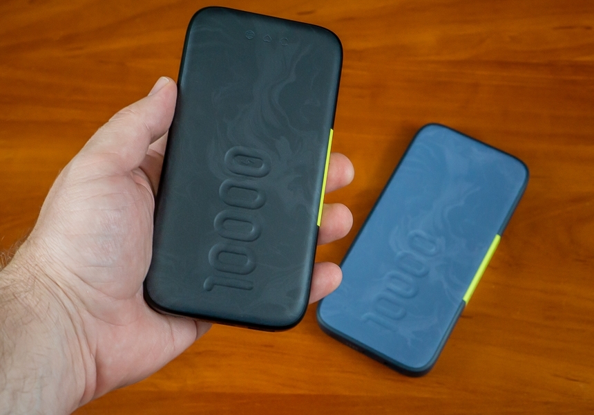У меня дома как раз имеются два пауэрбанка на 10 Ач — один тонкий, но вытянутый, а другой толстый, но компактный. С другой стороны, у InstantGo выходная мощность зарядки может достигать 30 Ватт и имеется поддержка Power Delivery, а все мощные зарядники обычно крупнее своих маломощных конкурентов.