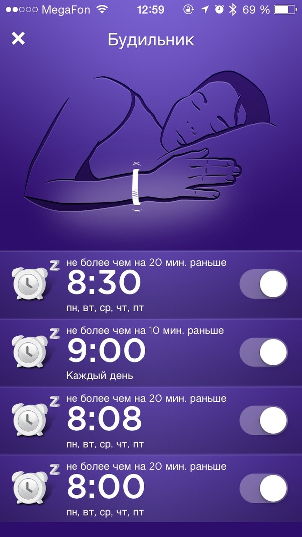 Кстати, на этом ночные возможности UP24 не заканчиваются. Ведь в нём встроен вибромотор, а это значит, что вы можете использовать браслет как будильник. Достаточно лишь задать время, в которое вы хотели бы проснуться. Трекер учтёт фазы вашего сна и разбудит во время лёгкого сна, когда вам проще всего открыть глаза.