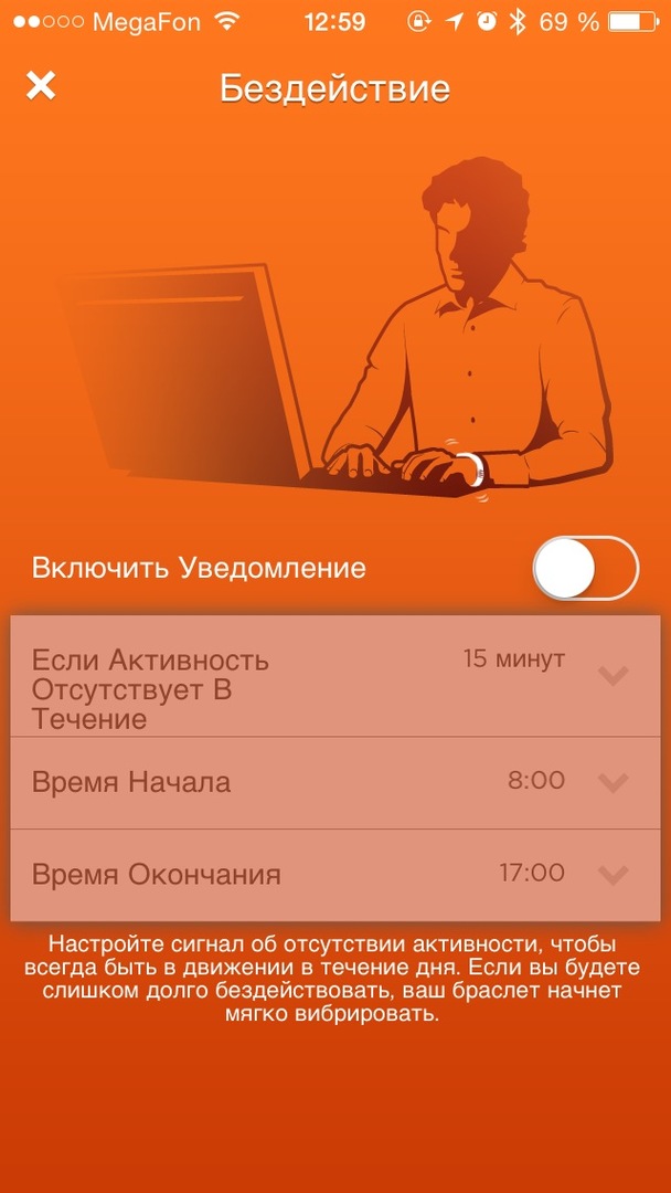Кроме того, приложение поддерживает создание простых напоминаний — например, о том, что вам пора принять лекарство, поесть или просто время ложиться спать. А можно ещё установить уведомления о достигнутых целях или о бездействии.