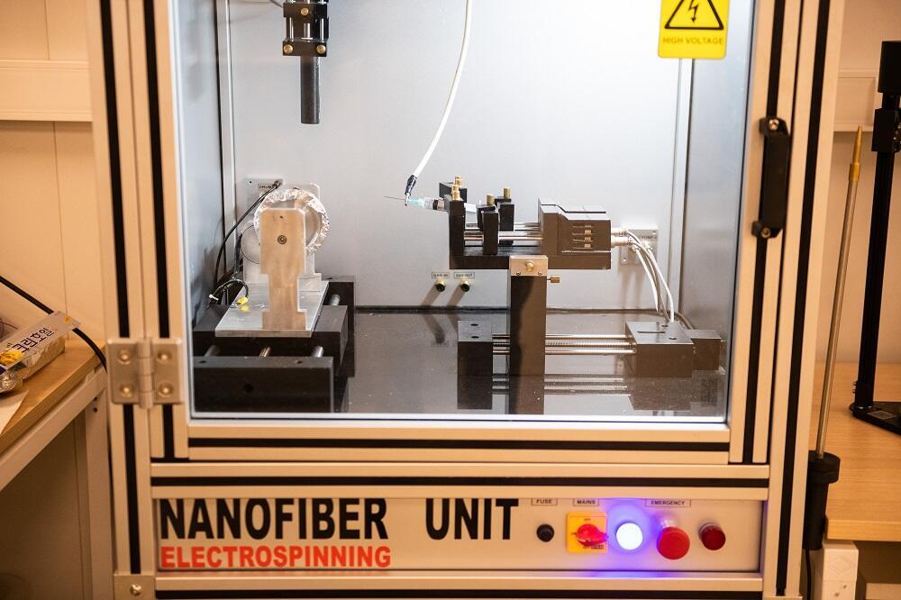 Чтобы получить те самые волокна из оксида алюминия, специалисты прибегнули к технологии электроспиннинга. Если говорить очень просто, то взяли раствор поливинилового спирта с оксидом алюминия, поместили в обычный шприц с тонкой иглой, начинают распылять и дают высокое напряжение. Раствор высыхает в воздухе и оседает в виде супер тонких нитей.