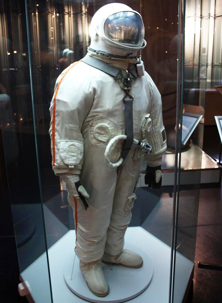 Лётный скафандр «Сокол-М» — модифицированный. Сначала в нём хотели сделать застёжку-молнию, но посчитали такое ненадёжным. Теперь в нём новый принцип соединения — жёсткое кольцо, которое разделяет верхнюю и нижнюю части