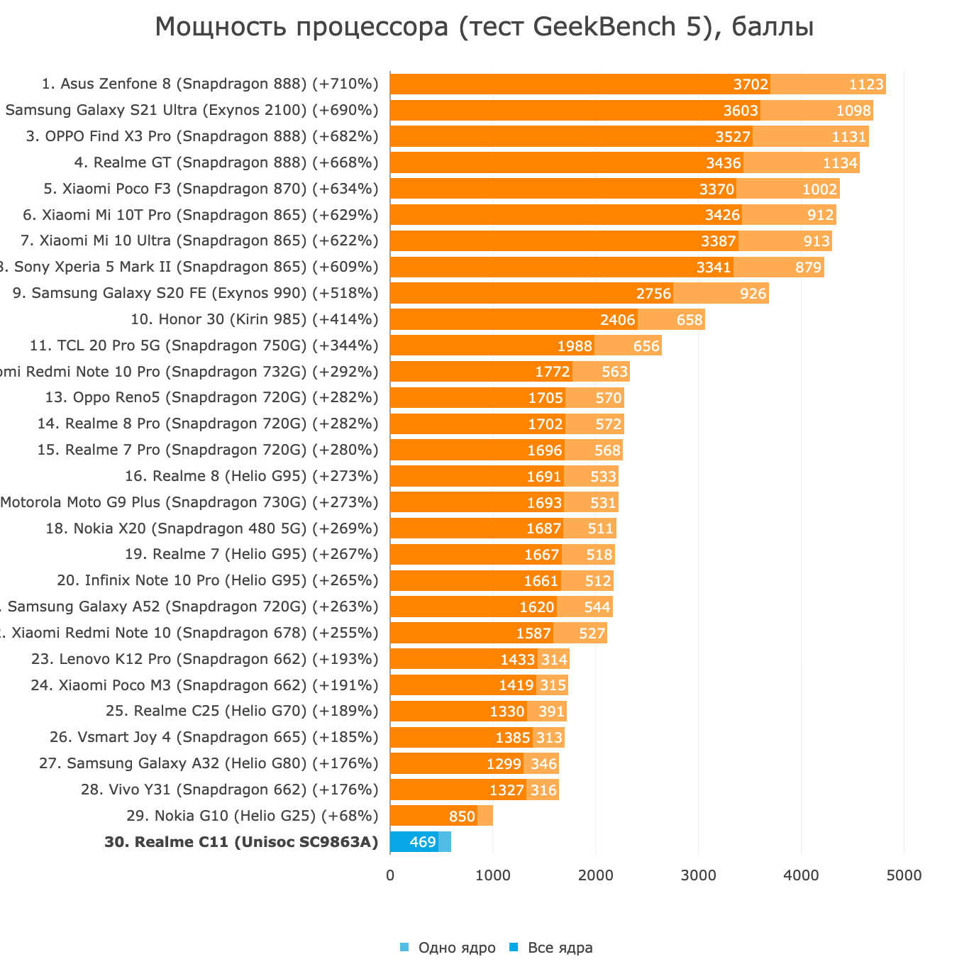 Сейчас SMIC, если мы говорим о смартфонах и планшетах, остался полигоном, в основном, для процессоров уровня "хуже уже особо некуда" — например, процессоров Unisoc серии SC. Такие сегодня встречаются в смартфонах itel, BQ, Inoi, Alcatel... ну, вы поняли. И в старших наиболее дешёвых (до 10 тысяч рублей) смартфонах более породистых брендов — Samsung Galaxy A03 Core, Realme C11 2021, ZTE Blade A71. Это процессоры уровня довольно стареньких уже Snapdragon 625/Snapdragon 460/MediaTek Helio P25, только при этом более прожорливые и склонные к нагреву, ведь техпроцесс у них старый — 28 нм против 14 или 16 нм у остальных процессоров с такой конструкцией.