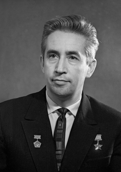 Экипаж космического корабля «Союз-10», летчики-космонавты (слева направо): В.А. Шаталов — командир, А.С. Елисеев — бортинженер, Н.Н. Рукавишников — инженер-испытатель