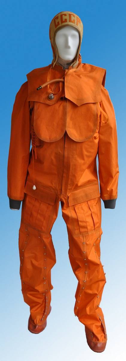 Гидрокомбинезон, принадлежавший лётчику-космонавту А.С. Елисееву (из комплекта ГК-2 для экипажей космического корабля «Союз»). Такие костюмы находились на корабле для случаев, если приземление будет в необитаемом труднодоступном месте. Предназначен для удержания космонавта на воде и защиты от охлаждения, ветра, дождя и снега на земле.