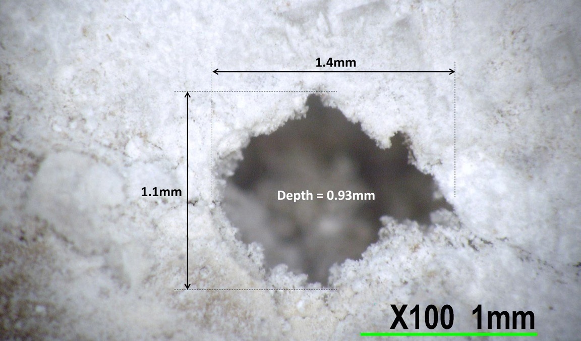 Средний размер входных отверстий в теплозащите корабля немного больше 1 миллиметра в диаметре при глубине 0,76 мм. В то же время, в сопле двигателя диаметр отверстий более 2 мм, а глубина — 0,47 мм. Самым крупным повреждением оказался скол 3,5 мм с центральным отверстием диаметром 0,814 мм и глубиной 0,82 мм. Несмотря на это, повреждения не повлияли на работу систем корабля.